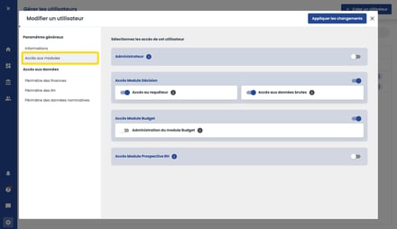 - Les accès aux modules et les rôles complémentaires