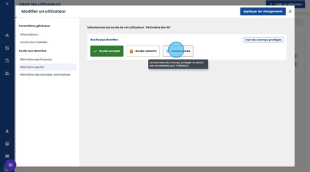 Par défaut lors de l'ajout du périmètre des données nominatives, tous les utilisateurs sont initialisés avec "Aucun accès".
