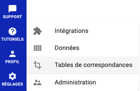 1. A gauche de votre écran, allez dans Réglages > Tables des Correspondances