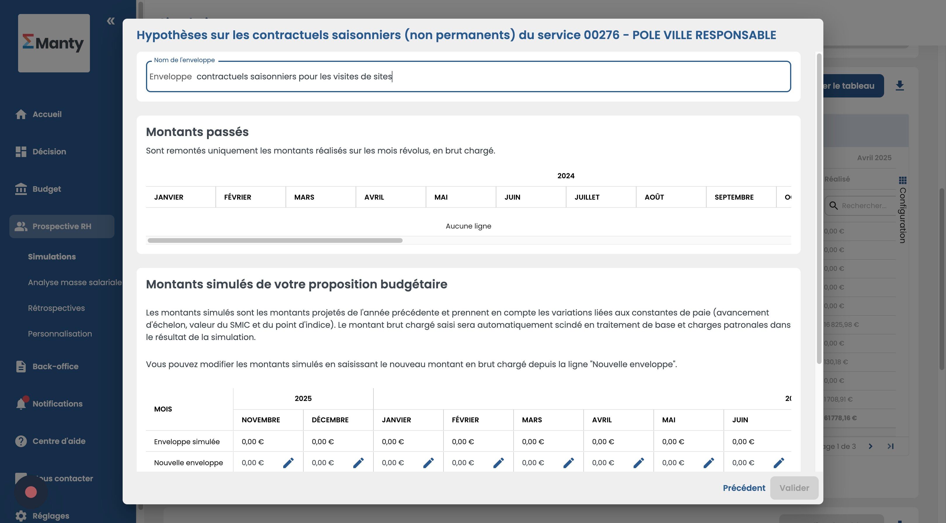 - Saisissez le montant global de l'enveloppe puis sélectionnez les mois sur lesquels répartir le montant et confirmez.